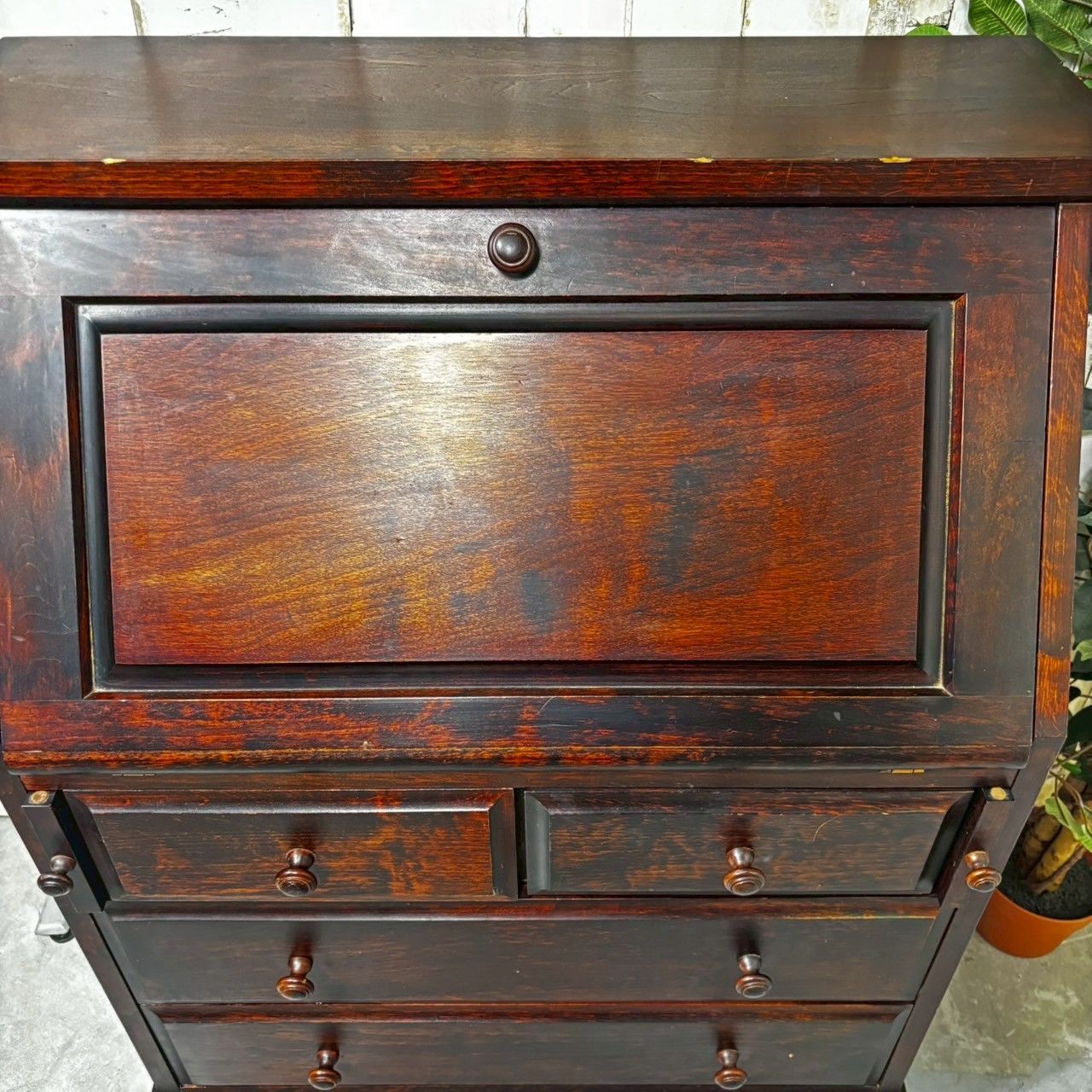 - 美術品・アンティーク・コレクション > 家具 > 長野松本民芸家具 天然木ライティングビューロー ダークブラウン デスク チェスト 長野松本民芸家具 天然木 ライティングビューロー デスク